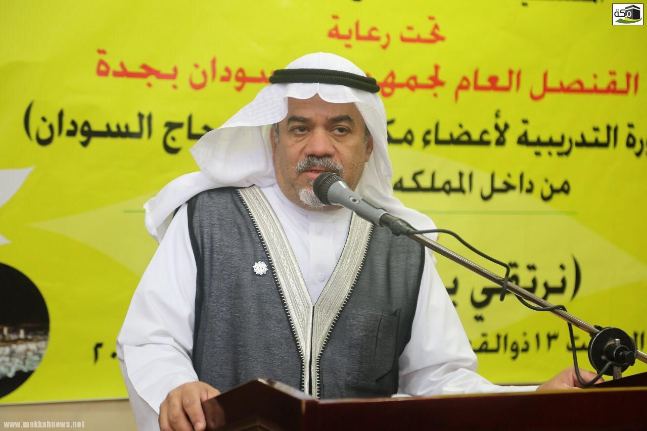 وتم تنظيم الدورة تحت شعار (لنرتقي بخدمات الحجيج) برعاية القنصل العام السوداني بجدة السفير عوض حسين، وحضور مساعد القنصل العام العميد نورالدين عبدالوهاب ومساعد القنصل لشؤون الحج والعمرة المنسق المقيم أحمد سر الختم، وبحضور عضو مجلس إدارة مؤسسة مطوفي حجاج الدول العربية المشرف على ساحل البحر الأحمر المطوف عبدالرزاق سعيد حسنين.