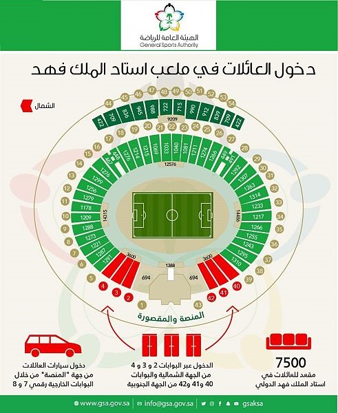 أعلنت الهيئة العامة للرياضة طرح تذاكر المقصورة الرئيسية في استاد الملك فهد الدولي بالرياض , و استاد مدينة الملك عبدالله الرياضية بجدة (الجوهرة)، للبيع أمام الجماهير الراغبة من العائلات أو الأفراد .