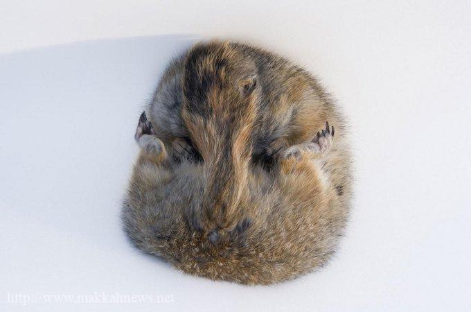 ويدخل السنجاب القطبي في مرحلة سبات شتوي تستمر لمدة 8 أشهر تقريبًا، يحفر خلالها جحرًا في الأرض ويتكور على نفسه ليبدو جثة هامدة لا تأبه بالجوع ولا بالبرد الشديد.