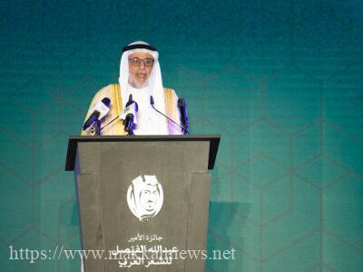 وقال الأمير خالد الفيصل في كلمة تحدث فيها عن الأمير الراحل عبدالله الفيصل ” عبدالله الفيصل هو من رباني ، وهو قدوتي وهو الذي رعاني طفلاً وشاباً ورجلا، رحمك الله عبدالله الفيصل .. كم افتقدك ” وقال أمين مجلس أمناء أكاديمية الشعر العربي، رئيس جامعة الطائف الدكتور يوسف عسيري ” لا يسعني في بداية كلمتي إلا أن أتوجه بالشكر الجزيل لصاحب السمو الملكي الأمير خالد الفيصل على ما قدمه للأدب العربي من دعم كبير من خلال أكاديمية الشعر العربي التي تحتضن منحة سموه الكبيرة وهي الجائزة الأكبر و الأهم في الوطن العربي لما تحمله من ميزات وهي الجائزة الأدبية الوحيدة التي تحمل مباركة خادم الحرمين الشريفين الملك سلمان بن عبدالعزيز حفظه الله وهي الجائزة التي تحمل اسم شخصية عظيمة حقا .. وهو اسم الراحل الأمير عبدالله الفيصل رحمه الله كذلك لضخامة الجائزة حيث تقدم جوائز بقيمة مليون ونصف المليون ريال سعودي .