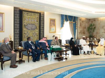 جدة : استقبل مستشار خادم الحرمين الشريفين أمير منطقة مكة المكرمة صاحب السمو الملكي الأمير خالد الفيصل في مقر الإمارة بجدة معالي الأستاذ الدكتور قطب مصطفى سانو، الأمين العام لمجمع الفقه الإسلامي الدولي يرافقه عددٌ من منسوبي المجمع.