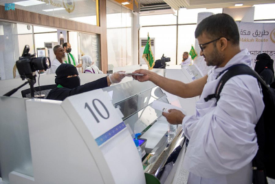 واس – شَارَكَ ضمن فريق مبادرة طريق مكة بمطار شاه جلال بجمهورية بنغلاديش الشعبية- كفاءاتٌ نسائيةٌ من منسوبي المديرية العامة للجوازات مؤهلة ومدربة لإنهاء أعمال الحجاج في صالة المبادرة واستكمال الإجراءات وأخذ الخصائص الحيوية لضيوف الرحمن المستفيدين من المبادرة.