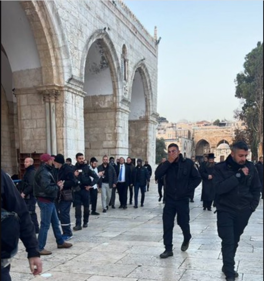 القدس المحتلة – اقتحم ” إيتمار بن غفير” وزير الأمن القومي في حكومة الكيان الإسرائيلي” اليوم، ساحات المسجد الأقصى المبارك، من جهة باب المغاربة، تحت حراسة مشددة من شرطة الاحتلال الاسرائيلي.