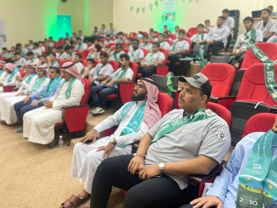 وشهد الحفل عدداً من الفقرات الوطنية من كلمات خاصة وأفلام وثائقية ومسابقة ثقافية وتقنية عن الوطن .