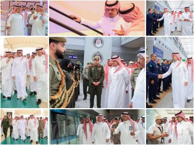 وبدأت الجولة التفقدية التي رافق سموه فيها وكيل وزارة الحج لشؤون الحج العمرة الدكتور عبدالعزيز الوزان، وعدد من القيادات الحكومية والأمنية والتشغيلية في المنطقة، ورئيس مجلس المديرين بشركة مطارات جدة المهندس رائد المديهيم، والرئيس التنفيذي للشركة المهندس مازن جوهر، والمستشار لمعالي رئيس الطيران المدني المهندس سليمان البسام، وعدد من مسؤولي الجهات الأمنية والتشغيلية بالمطار، من الصالة رقم (1)، حيث اطلع خلالها على سير العمل والخطة التشغيلية المعدة لخدمة المسافرين بشكل عام، وللمعتمرين على وجه الخصوص، كما اطلع سموه على منطقة الإجراءات الأمنية للمسافرين ومنصات الجوازات وصالة (الترانزيت) ومنطقة الجمارك والجهات الأمنية والتشغيلية ومواقع الخدمات المختلفة بالمطار، واستمع سموه إلى شرح عن الإجراءات والخدمات المقدمة للمسافرين