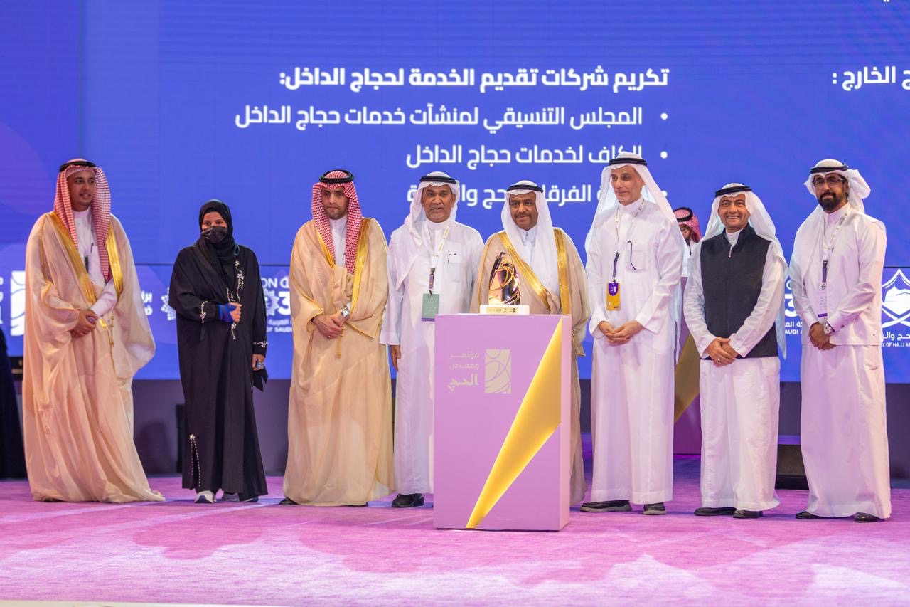 وسلم نائب وزير الحج والعمرة الدكتور عبدالفتاح سليمان مشاط جائزة التميز لرئيس مجلس الإدارة الأستاذ محمد بن حسن معاجيني، بحضور نائب الرئيس الأستاذ موفق خوج والرئيس التنفيذي المهندس محمد بادغيش في الحفل الختامي للمعرض.