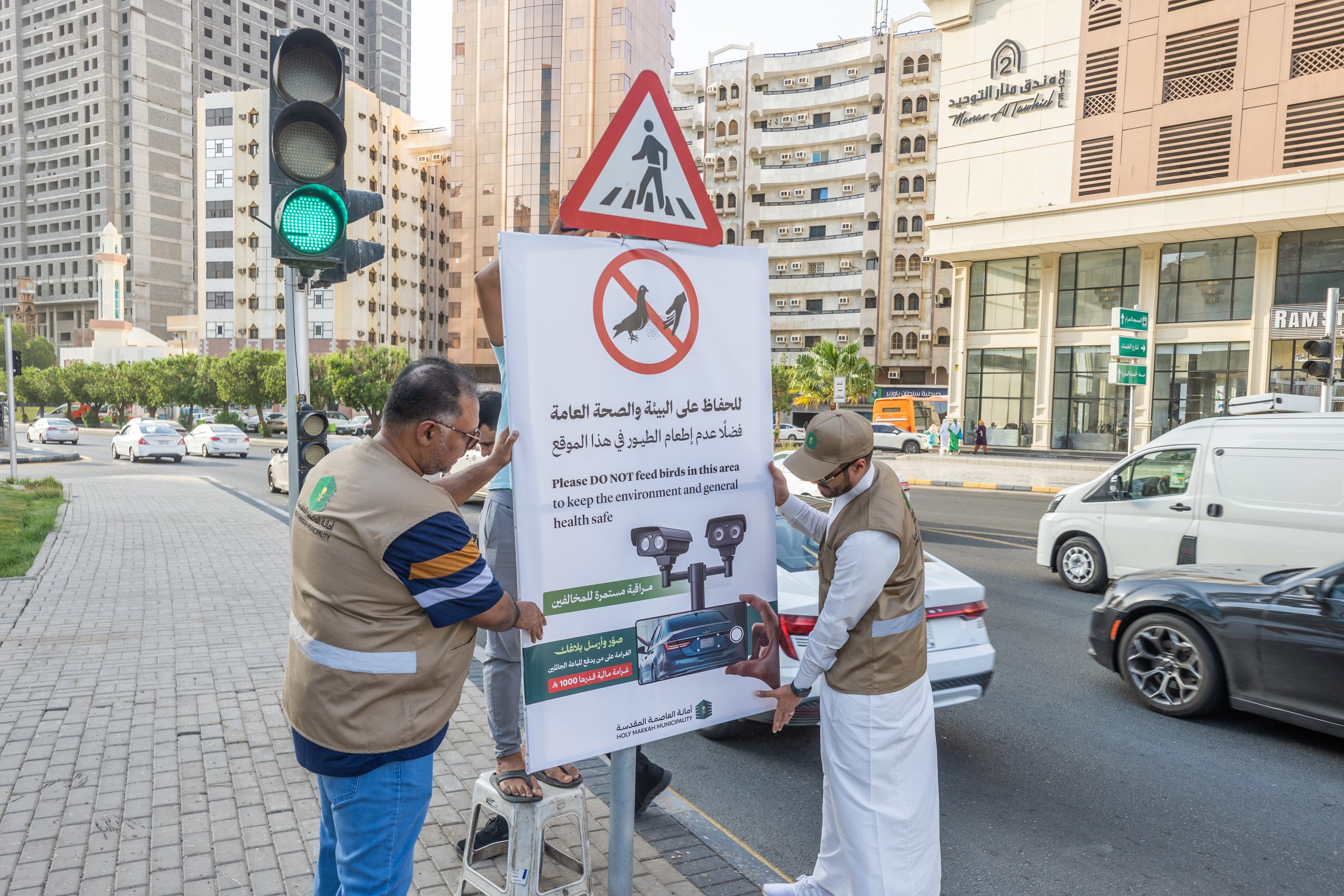 وشملت أعمال المبادرة تركيب (8) لوحات توعوية في عدد من المواقع الحيوية بمكة المكرمة، للتحذير من ظاهرة إطعام الطيور في الشوارع والمرافق العامة، لما تسببه هذه الممارسات من تراكم للمخلفات وجذب للحشرات وانتشار للأمراض، إضافة إلى ما تخلفه من آثار سلبية على النظافة العامة وتشويه للمظهر الحضري.