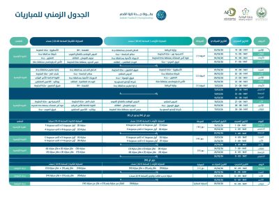 فيما تقرر أن تقام الأدوار النهائية من البطولة على رديف مدينة الملك عبدالله الرياضية “الجوهرة”.