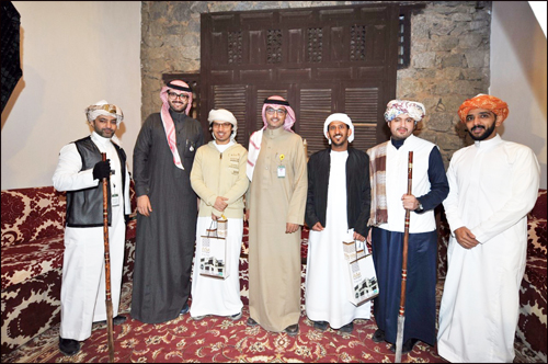 أعضاء الوفد الاماراتي يؤدون لعبة المزمار في بيت مكة بالجنادرية