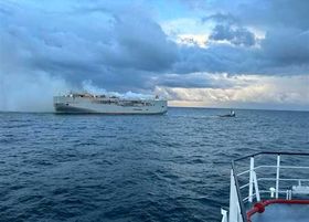 السلطات الهولندية تبدأ سحب سفينة شحن محترقة إلى مرسى آمن