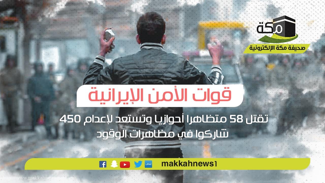 قوات الأمن الإيرانية تقتل (58) متظاهرا أحوازيا وتستعد لإعدام (450) شاركوا في مظاهرات الوقود
