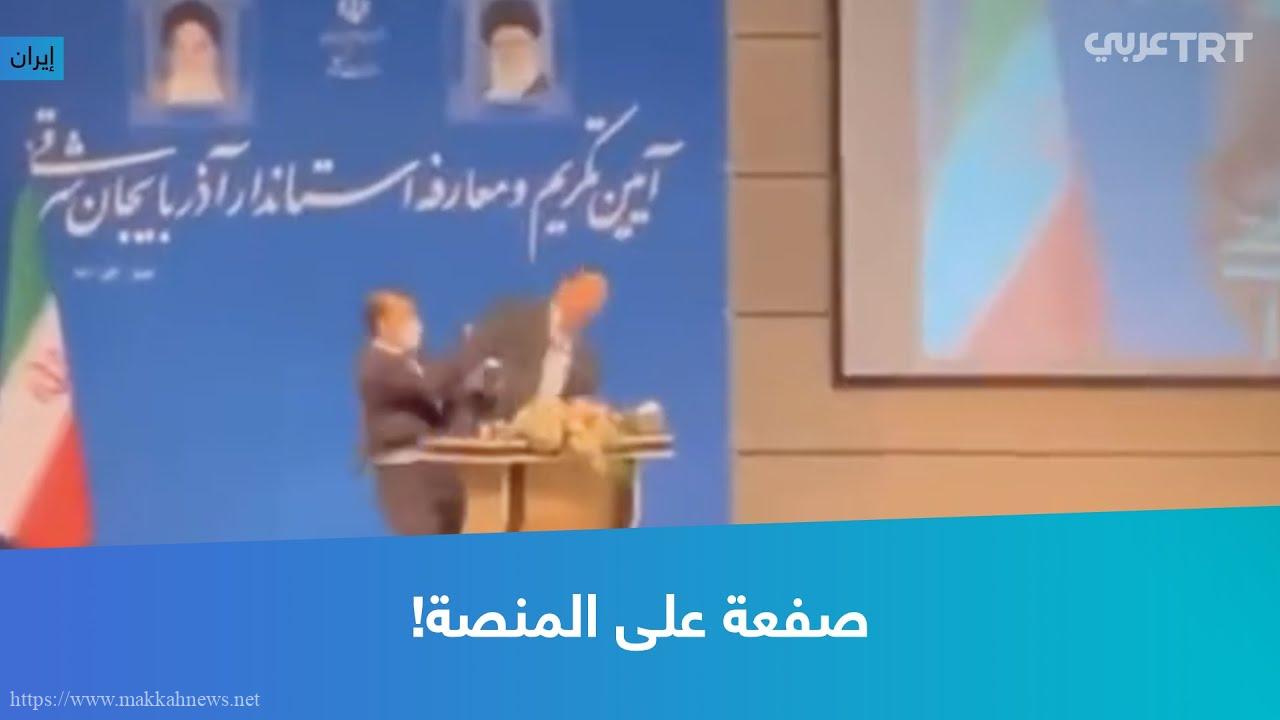 مسؤول إيراني يتعرض للصفع على وجهه أمام شاشات التلفزيون