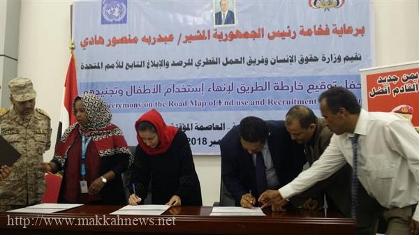 الحكومة اليمنية توقع مع الأمم المتحدة اتفاقية خارطة طريق لمنع تجنيد الأطفال