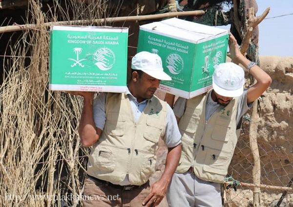 مركز الملك سلمان للإغاثة يوزع 1000 سلة غذائية في مديرية مجزر في مأرب