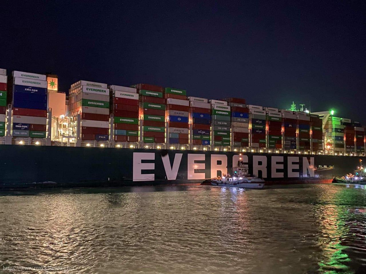 استجابة السفينة الجانحة في قناة السويس لمحاولات السحب