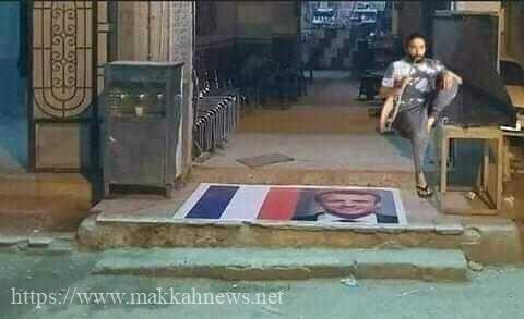 المصريون يدوسون على وجه ماكرون في مقهى بلدي بعد إساءته للنبي