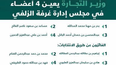 أصدر معالي وزير التجارة الدكتور ماجد بن عبدالله القصبي قراراً بتعيين أربعة أعضاء في مجلس إدارة الغرفة التجارية بمحافظة الزلفي…