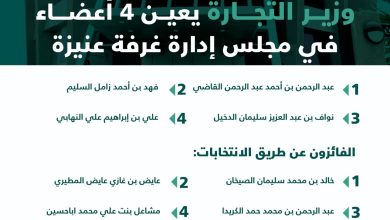 أصدر معالي وزير التجارة الدكتور ماجد بن عبدالله القصبي قراراً بتعيين أربعة أعضاء في مجلس إدارة الغرفة التجارية بمحافظة عنيزة…
