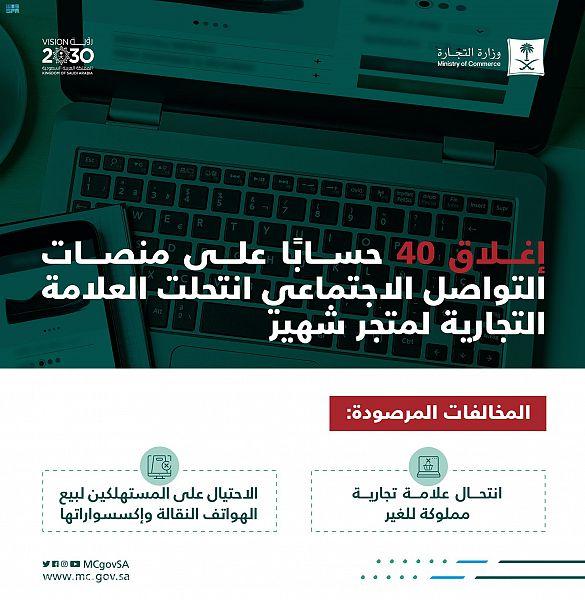“التجارة” تغلق 40 حسابًا على منصات التواصل انتحلت علامة تجارية لمتجر شهير وتحايلت على المستهلكين #عاجل