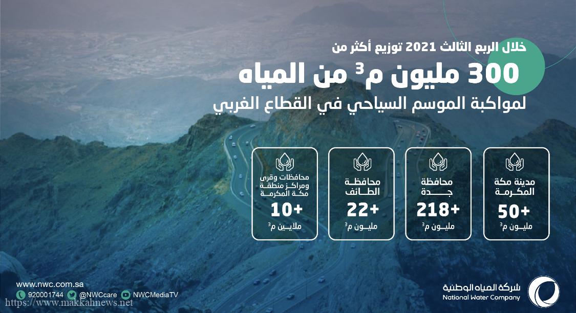القطاع الغربي بالمياه الوطنية وزع أكثر من 300 مليون م3 من المياه خلال فترة الصيف بمنطقة مكة المكرمة