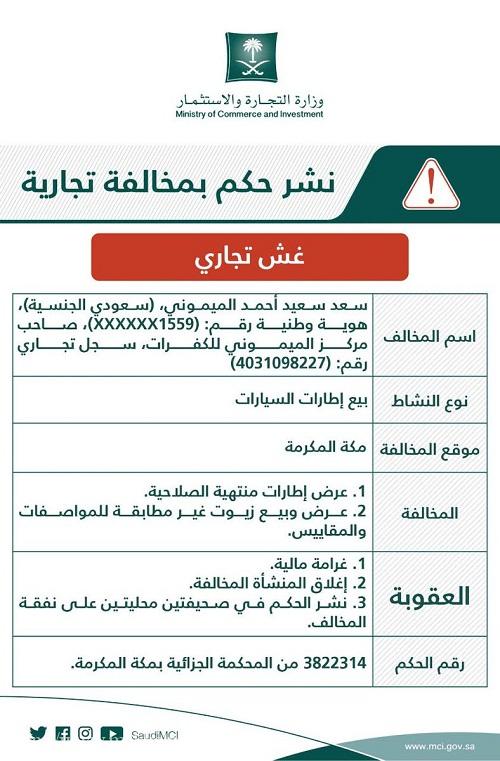 “التجارة” تشهر بمنشأة تبيع إطارات منتهية الصلاحية في مكة