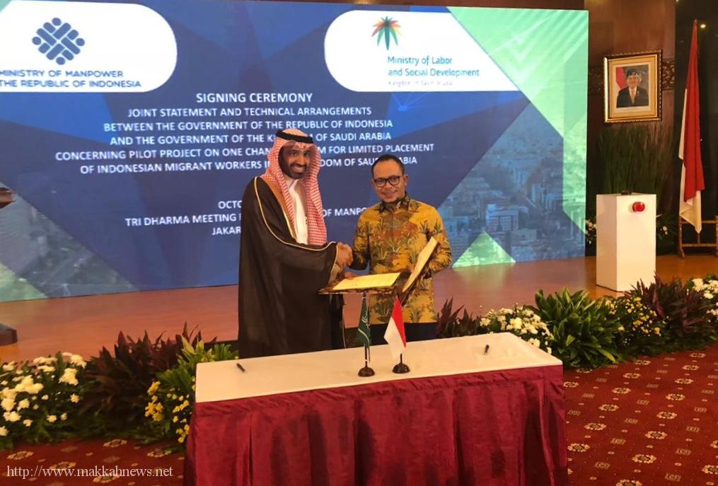 وزير العمل والتنمية الاجتماعية يوقع مع نظيره الإندونيسي في جاكرتا اتفاقية لإعادة استقدام العمالة المنزلية الإندونيسية للعمل في المملكة