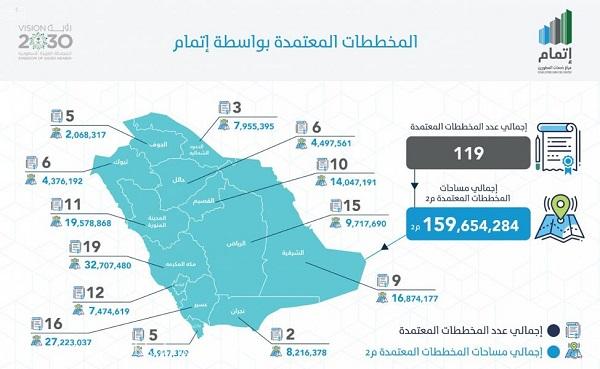 “إتمام” ينهي اعتماد 119 مخططاً سكنياً بمساحة تتجاوز 159.6 مليون م2