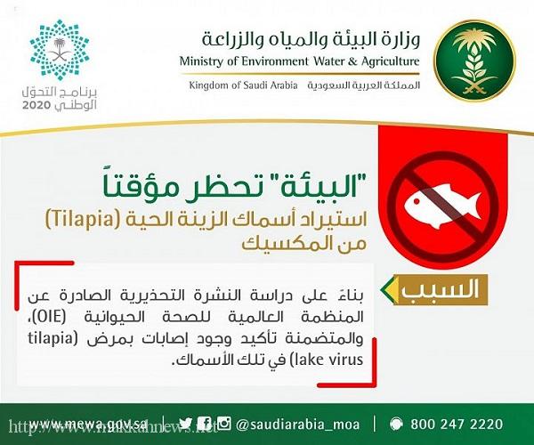 (مكة) – الرياض فرضت وزارة البيئة والمياه والزراعة، حظراً مؤقتاً على استيراد أسماك الزينة الحية من نوع (tilapia) من المكسيك.…