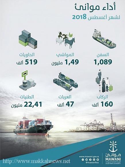 موانئ: مناولة 22 مليون طن بضائع خلال أغسطس 2018