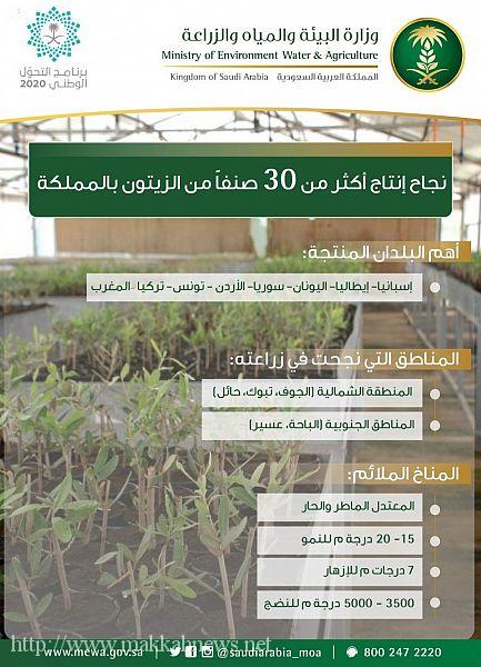 نجاح إنتاج أكثر من 30 صنفاً من الزيتون بالمملكة