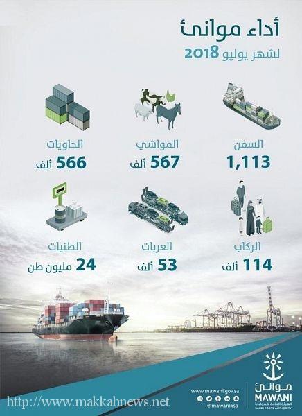 مناولة 24 مليون طن بضائع في الموانئ خلال شهر يوليو 2018