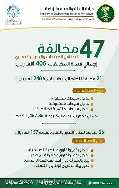 (مكة) – الرياض ضبطت وزارة البيئة والمياه والزراعة 47 مخالفة لنظامي المبيدات، والبذور والتقاوي والشتلات في دول مجلس التعاون لدول…