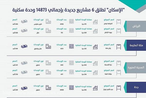 إطلاق 6 مشاريع سكنية جديدة في الرياض ومكة والمدينة وجدة