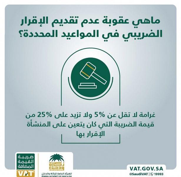 (مكة) – الرياض أعلنت الهيئة العامة للزكاة والدخل أن غرامة عدم تقديم المنشآت للإقرار الضريبي لضريبة القيمة المضافة خلال المدة…