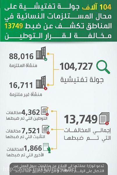 جولات العمل التفتيشية تضبط 13749 مخالفة لقرار التوطين في محال المستلزمات النسائية