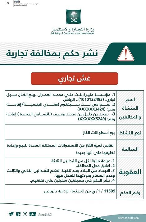(مكة) – الرياض شهرت وزارة التجارة والاستثمار بمؤسسة متخصصة في بيع وتعبئة اسطوانات الغاز ومستلزماته بمدينة الرياض، بعد صدور حكم…