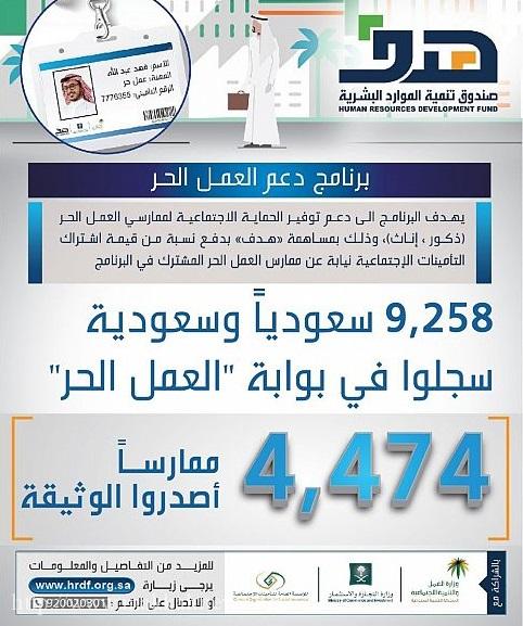 9528 سعودياً وسعودية سجلوا في بوابة “العمل الحر” و 4474 ممارساً أصدروا الوثيقة