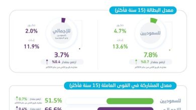 ” الإحصاء “: معدل مشاركة السعوديات في القوى العاملة يصل إلى 36.2%