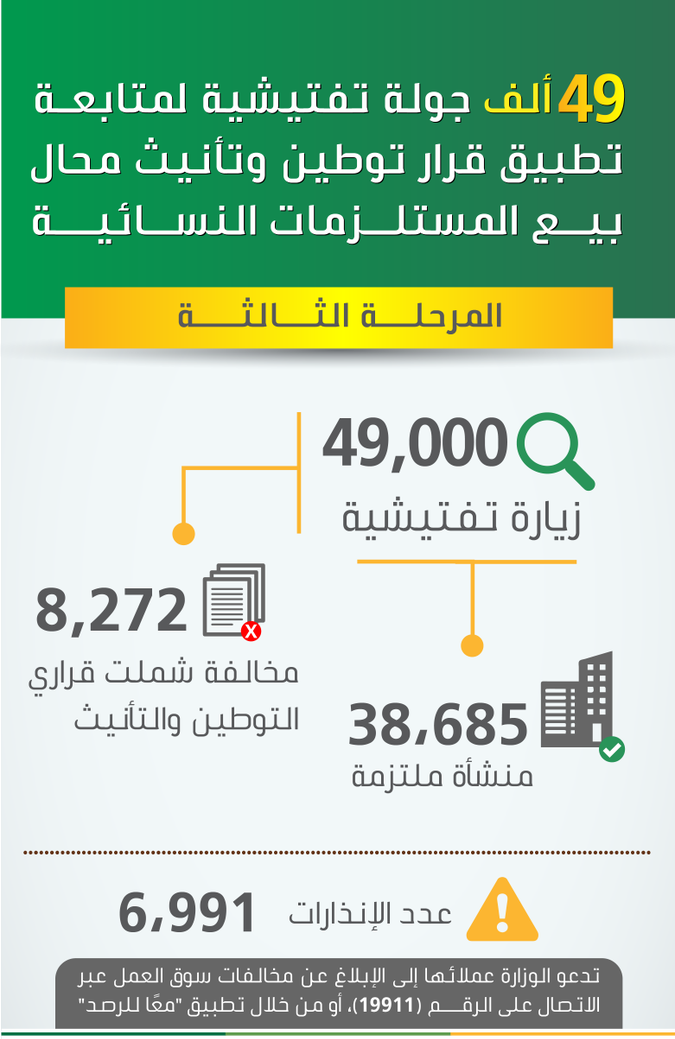 حملات “العمل” التفتيشية تضبط 8272 مخالفة شملت قراري التوطين والتأنيث