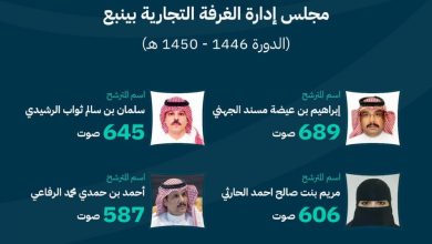 التجارة : فوز 4 مترشحين بينهم سيدة أعمال في انتخابات غرفة ينبع
