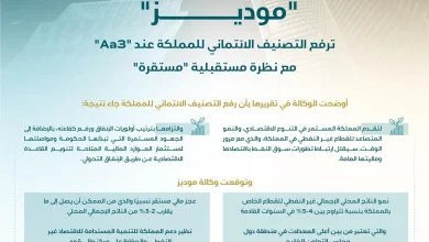 وكالة التصنيف الائتماني “موديز” ترفع تصنيف المملكة الائتماني عند “aa3” مع نظرة مستقبلية “مستقرة”
