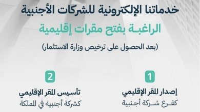 كشفت وزارة التجارة عن تقديمها لخدمات إلكترونية للشركات الأجنبية الراغبة بفتح مقر إقليمي بعد حصول على ترخيص من وزارة الاستثمار…