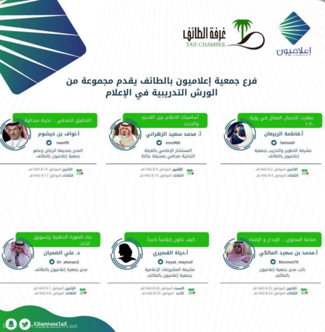 أطلقت غرفة الطائف وجمعية “إعلاميون” , عدداً من الورش التدريبية المتخصصة في مجال الإعلام يقدمها نخبة من أعضاء الجمعية…