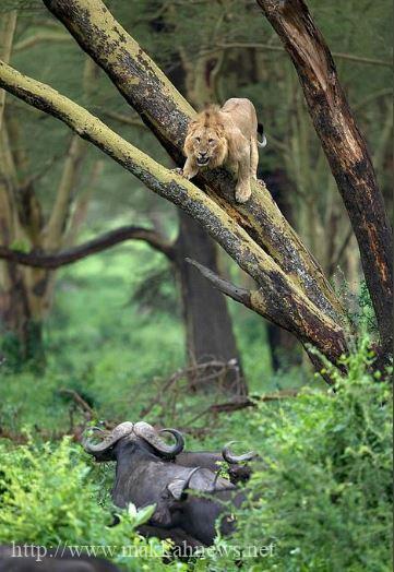 وثق أحد المصورين الهواة في كينيا، أسدًا في مأزق حقيقي عندما حاصره قطيع من الجاموس الغاضب فوق إحدى الأشجار. وعملًا…