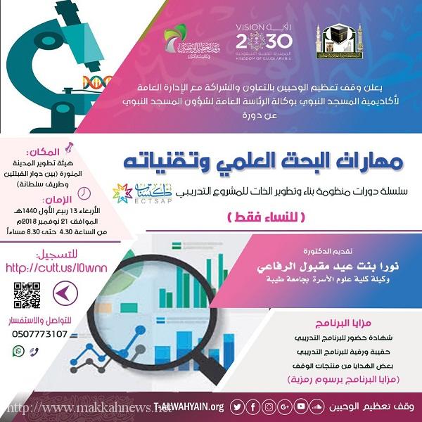 وقف تعظيم الوحيين بالمدينة ينظم برنامج “مهارات البحث العلمي وتقنياته”