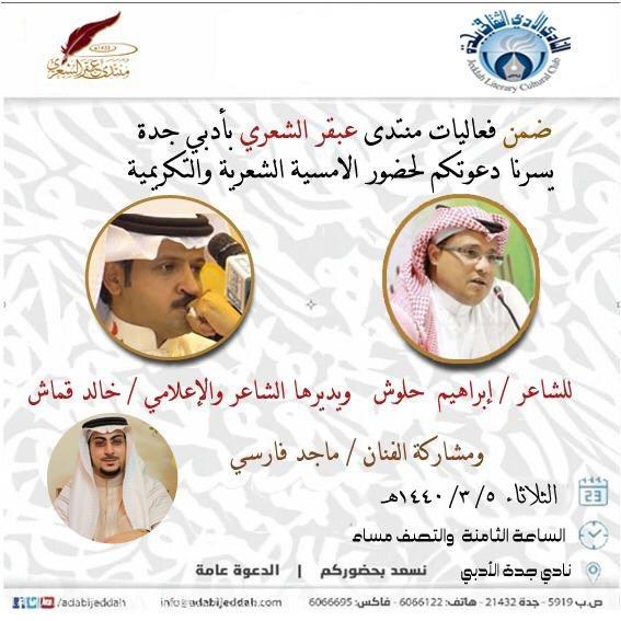 (مكة) – جدة يُنظم منتدى عبقر الشعري بالنادي الأدبي الثقافي في جدة غدا أمسية شعرية يستضيف فيها الشاعر إبراهيم حلوش.…