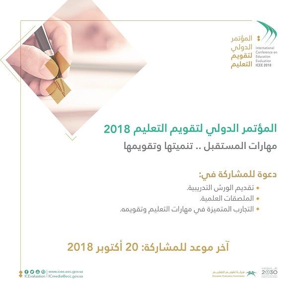 (مكة) – الرياض أعلنت اللجنة المنظمة للمؤتمر الدولي لتقويم التعليم 2018م أن السبت القادم 11 صفر 1440هـ، آخر موعد لاستقبال…