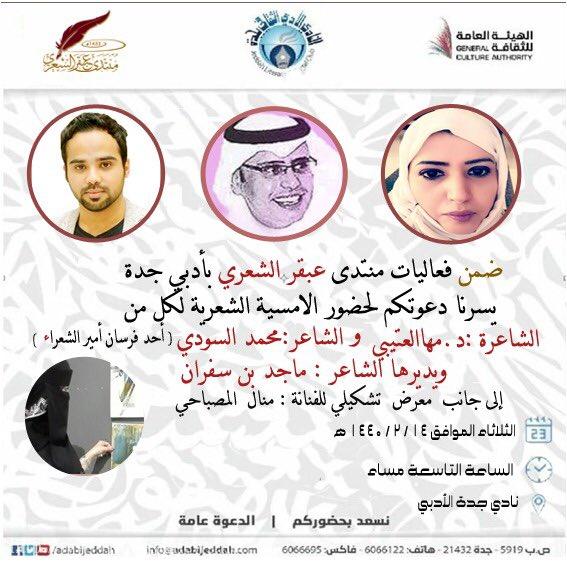 (مكة) – جدة يُقيم منتدى عبقر الشعري بالنادي الأدبي الثقافي في جدة غداً ، أمسية شعرية يستضيف فيها الشاعرة الدكتورة…