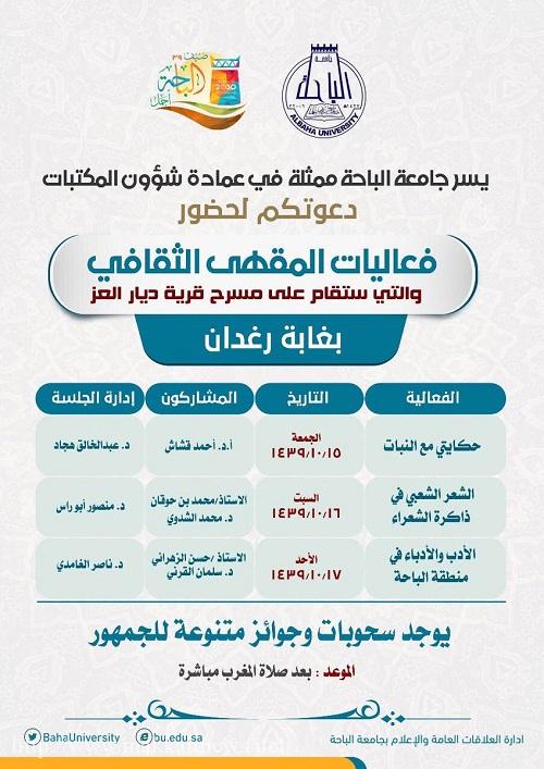جامعة الباحة تنظم بعد غدٍ فعاليات المقهى الثقافي
