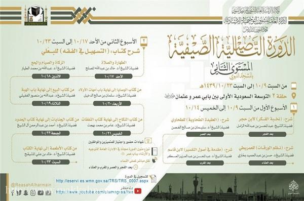 وكالة المسجد النبوي تعلن عن إقامة الدورة التأصيلية الصيفية